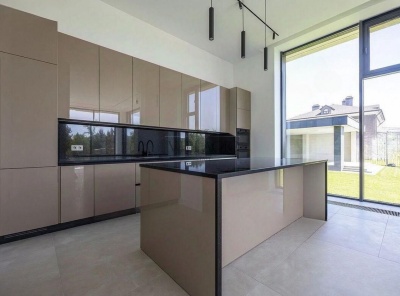 Продажа нового загородного дома площадью 350 кв.м. Новорижское шоссе, 23 км от МКАД. Коттеджный поселок Новорижский. Одноэтажный, современный проект построен из кирпича. Фасад облицован немецкой глиняной плиткой премиум класса Feldhaus Klinker. Панорамное остекление из алюминиевого профиля. Интерьер дома выполнен в минималистичном стиле. Под ключ. Частично меблирован и оснащен всей необходимой техникой от ведущих производителей. В помещениях уложена высококачественная дубовая инженерная доска от компании FiNEX.