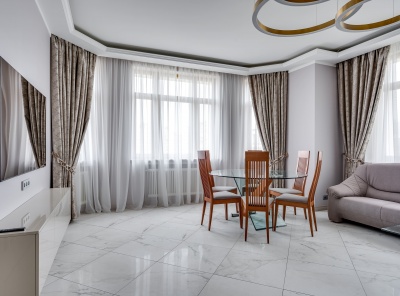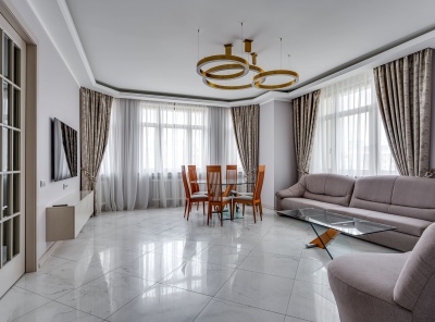 Аренда 3-комнатной квартиры площадью 120 кв.м. с дизайнерским ремонтом. Метро Университет, 1 минута пешком. Ломоносовский проспект, дом 25к3. ЖК Доминион. Планировочное решение кухня с большой лоджией объединена с гостиной, кабинет, мастер спальня с двумя гардеробными комнатами и лоджией, большой санузел. Квартира полностью меблирована Итальянской мебелью META, TURRI, VANITI. Итальянская кухня фирмы ARCA оборудована современной бытовой техникой Miele и Bosch. Санузел оборудован качественной европейской сантехникой и Немецкими умывальниками фирмы DIVA.