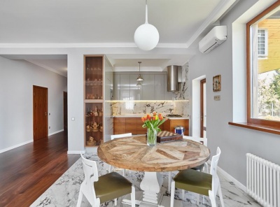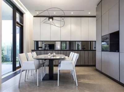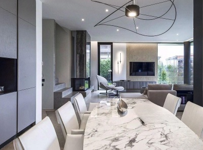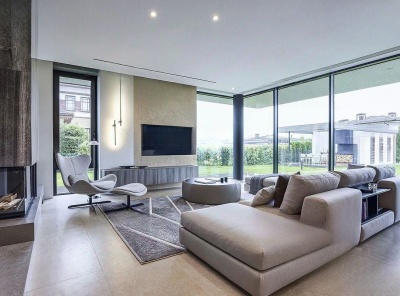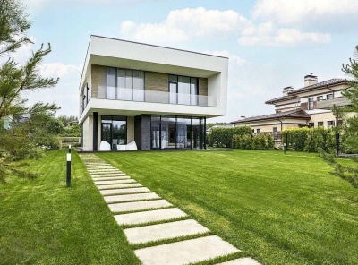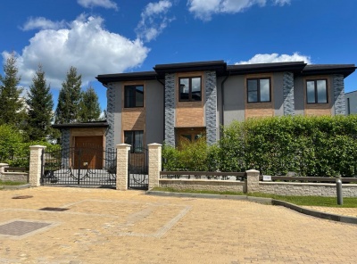 Продажа загородной усадьбы общей площадью 580 кв. м. Новорижское шоссе, 23 км от МКАД. Коттеджный поселок Борзые. Построен в 2 этажа под ключ. Великолепная усадьба, которая включает в себя два дома, площадь каждого 290 кв.м. Сохраняя общий стиль архитектуры, каждый дом обладает своей уникальной отделкой. Первый дом 290 кв. м. с современным модерн- минимал интерьером, в котором линии и пространство сплетаются в гармонию комфорта.