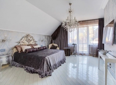 Аренда загородного дома площадью 400 кв.м. Новорижское шоссе, 30 км от МКАД. Коттеджный поселок Кедры. Коттедж построен в 2 этажа. Меблирован эксклюзивной итальянской мебелью, оснащен премиальной техникой. В доме 5 спален, 2 гостиные с камином и пианино, полностью оборудованная кухня, кабинет, гардеробные в каждой спальне, 5 с/у. Две террасы, одна из которых оборудована зоной барбекю и джакузи. Участок 22 сотки, с великолепным ландшафтным дизайном, с плодоносящим садом. Все коммуникации в доме центральные, магистральный газ, резервный генератор.