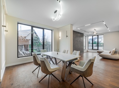 Продается загородный дом площадью 400 кв.м, расположенный в живописном коттеджном поселке Новорижский, всего в 23 км от МКАД, на Новорижском шоссе. Этот двухэтажный коттедж с отделкой под ключ воплощает в себе изящество неоклассического стиля, где каждый элемент интерьера тщательно продуман и исполнен с артистичным вниманием к деталям. Панорамные окна наполняют пространство светом и открывают великолепный вид на уютный поселок, создавая атмосферу умиротворения.