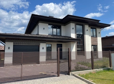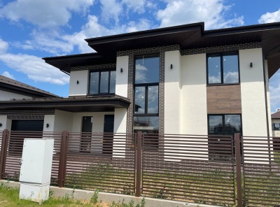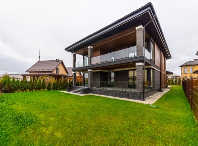 Продажа загородного дома площадью 400кв.м. Новорижское шоссе, 23 км от МКАД. Коттеджный поселок Новорижский. Дом построен в 2 этажа из кирпича. Фасад Немецкий клинкер. Отличный проверенный проект с удобным планировочным решением. Огороженный участок 12 соток правильной формы. Все коммуникации центральные.Планировка:1 этаж — кухня-столовая-гостиная с выходом на крытую веранду, спальня, гардеробная, кабинет, с/у, котельная, гараж на 1 м/м,2 этаж — мастер-спальня с гардеробной и с/у, 2 спальни, гардеробная, с/у.