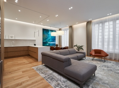 Продажа 5-комнатной квартиры площадью 234 кв.м. Метро Парк культуры, 15 минут пешком. Улица Ефремова, дом 19к2. ЖК Knightsbridge Private Park. Квартира выполнена в чистовой отделке White Box. Настоящий простор для Вашей фантазии! Высокие потолки, 3,6 м. В квартире итальянские деревянные окна Albertini, работает приточно-вытяжная система вентиляции и система кондиционирования.Возможная планировка: кухня-столовая-гостиная, мастер-спальня с ванной и гардеробной комнатами, 2 гостевые спальни с санузлами, гардеробная, постирочная, холл.