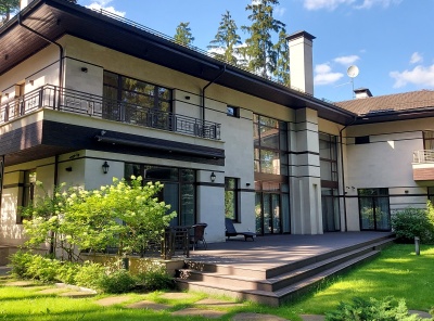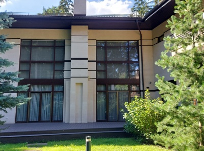 Продажа загородного дома площадью 850 кв. м. Минское шоссе, 11 км. от МКАД. Коттеджный поселок Грибово. Дом построен в 2 этажа, под ключ. Шикарный дом в современном архитектурном стиле, с панорамным остеклением. Высокое качество строительства, строили для себя. Дом - словно новый, все в отличном состоянии. Использовались самые современные технологии. Очень удобная планировка. Высота потолков в гостиной 7м. Эксклюзивная отделка. Мебель из США и Италии: Baker, Gorgetti, Poltorna Frau, Molteni и др., кухня Bulthaup, оборудование Sub-Zero, Wolf. Свет - Италия.