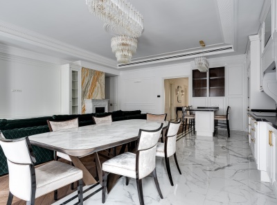 Продажа 5-комнатной квартиры общей площадью 300 квадратных метров. Метро Спортивная 7 минут пешком, метро Фрунзенская 5 минут пешком. Улица Усачева, 11Ж. ЖК Садовые кварталы. Ремонт выполнен в стиле неоклассика. Панорамные окна, высокие потолки 3,6 метров, просторные комнаты. Из окон открывается вид во двор жилого комплекса. Квартира очень светлая и солнечная за счет большого количества панорамных окон. Установлена система умный дом. Приточно-вытяжная система вентиляции. Натуральный паркет и панно из оникса.