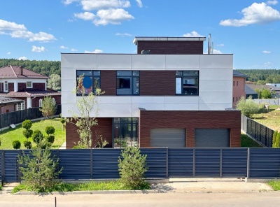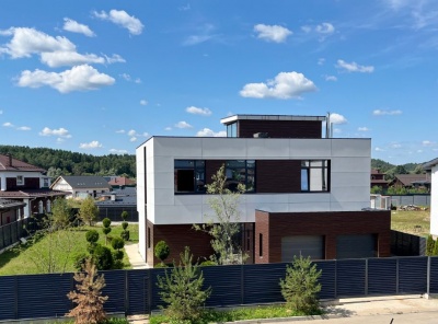 Продажа нового загородного дома площадью 420 кв.м. Новорижское шоссе, 28 км от МКАД. Коттеджный поселок Подмосковные просторы. Дом построен в современном стиле с использованием высококачественных материалов. В доме обустроена эксплуатируемая кровля с мангальной зоной, площадью 140 кв.м. с которой открывается потрясающий вид на окрестности. Стены построены из кирпича Роrоthеrm, высота потолков 3,5 метра. Межэтажные и кровельные перекрытия - монолитный железобетон.