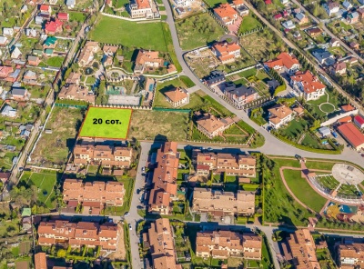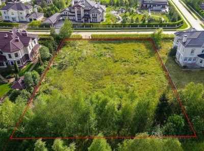 Продажа загородного участка площадью 20 соток. Новорижское шоссе, 14 км от МКАД. Коттеджный поселок Маленькая Италия. Участок правильной формы находится на главной, центральной улице поселка.