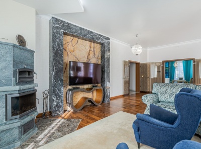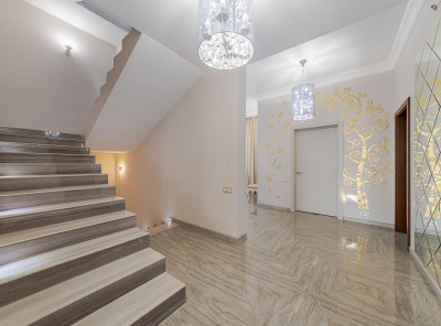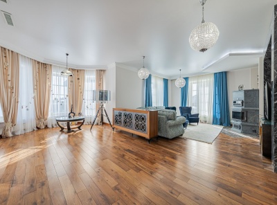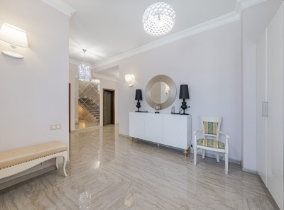 Продажа загородного дома площадью 560 кв.м. Новорижское шоссе, 23 км от МКАД. Коттеджный поселок Новорижский. Дом построен по индивидуальному проекту в 3 этажа из кирпича под контролем тех.надзора. Фасад дома дома облицован Дагестанским камнем. Интерьер выполнен в современном Европейском стиле с применением высококачественных материалов. На полах уложен паркет из массива Американского ореха. Установлена центральная система кондиционирования. В котельной установлен котел Buderus, система отчистки и умегчения воды.