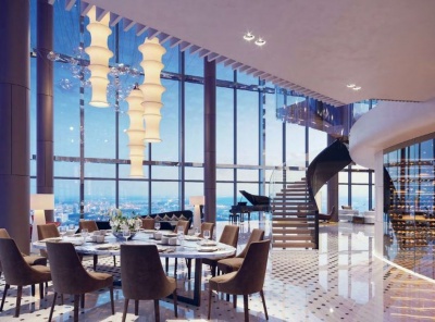 Продажа эксклюзивного трехэтажного пентхауса общей площадью 2180,9 кв.м. Метро Выставочная, 2 минуты пешком. Пресненская набережная, дом 12. Башня Федерация-Восток. Апартаменты без отделки, высота потолков 5,5 м, в парадном зале - 12 м. . Установлена самая современная система вентиляции и кондиционирования. Главная деталь интерьера на вершине Башни Федерация - фантастические панорамы Москвы и неба. Чтобы наслаждаться ими в полной мере, в пентхаусе установлены огромные стеклянные стены высотой 5,2 метра без лишних балок и перекладин.
