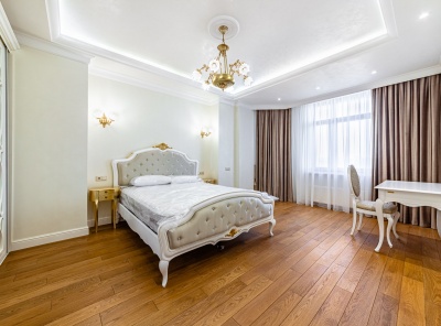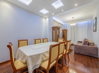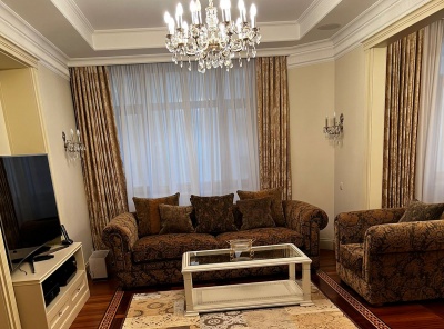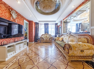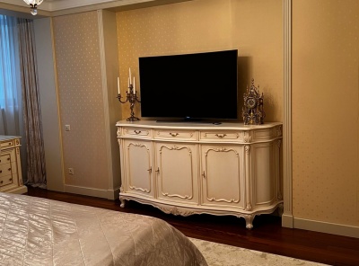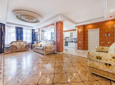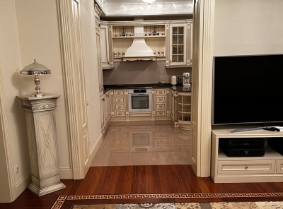 Аренда 4-комнатной квартиры площадью 190 кв.м. Метро Университет, 1 минута пешком. Ломоносовский проспект, дом 25к5. ЖК Доминион. Кухня оборудована современной бытовой техникой. Квартира выполнена в тёплых светлых тонах. Квартира меблирована итальянской дорогой мебелью. Есть одно машиноместо в подземном паркинге рядом с лифтом.Планировка: кухня-гостиная-столовая, 3 спальни, хоз. комната, 3 санузла.