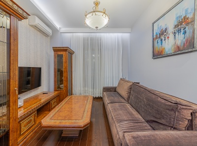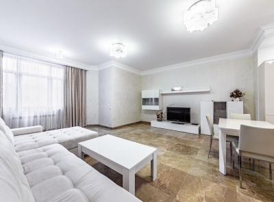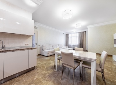 Аренда 3-комнатной квартиры площадью 110 кв.м. c ремонтом в современном стиле. Метро Университет, 1 минута пешком. Ломоносовский проспект, дом 25к5. ЖК Доминион. Кухня оборудована современной бытовой техникой Kupperbush. Квартира выполнена в тёплых светлых тонах. Квартира меблирована итальянской дорогой мебелью. Есть одно машиноместо в подземном паркинге рядом с лифтом. Планировка: кухня-гостиная, 2 спальни, постирочная, 2 санузла.