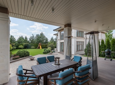 Продажа загородного дома общей площадью 500 кв.м. Новорижское шоссе, 18 км от МКАД. Коттеджный поселок Ренессанс Парк. Дом построен в 2 этажа, под ключ, со стильной отделкой и полной обстановкой в современной классике по авторскому дизайн-проекту. Мебель подобрана под заказ, европейских и американских брендов. В отдельной постройке – гараж на 3 а/м, кладовое помещение - надо гаражом квартира для персонала на 2 спальни, гостиная, с/у, котельная. Также спа-зона с сауной, с/у, комнатой отдыха и выходом на открытую террасу.