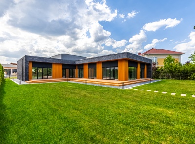 Продажа загородного коттеджа площадью 400 кв.м. Новорижское шоссе, 23 км от МКАД. Коттеджный поселок Новорижский. Великолепный одноэтажный проект с отделкой Whitebox. Современный дизайн, панорамное остекление, просторные комнаты, высокие потолки. Вся инженерия разведена по дому по дизайн проекту. Подробный, грамотный дизайн проект прилагается, по Вашему желанию доведем проект - под ключ. Все центральные коммуникации. Участок 12 соток с видом на канал и прогулочную зону. Все коммуникации центральные.