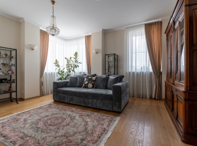 Продажа 2-комнатной квартиры 93 кв.м. в классическом стиле. Метро Фрунзенская, 4 минуты пешком. Комсомольский проспект, дом 32. ЖК Камелот. Квартира очень удачно расположена в жилом комплексе, все окна выходят во двор. Немецкая кухня с европейской техникой Bosch. Качественная сантехника. Все окна заменили на новые с дополнительной шумоизоляцией. Качественный ремонт, использовались импортные материалы. Планировка: кухня, гостиная, хозяйская спальня со своей гардеробной, просторный холл, два санузла.