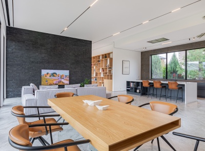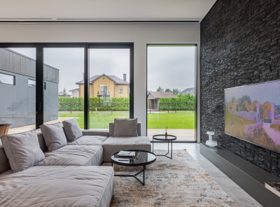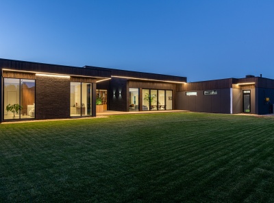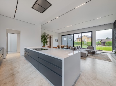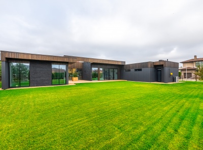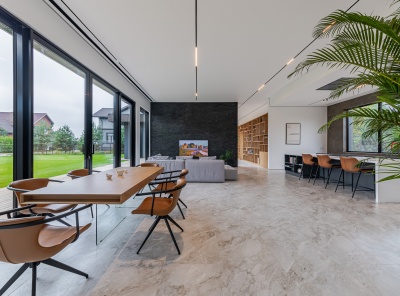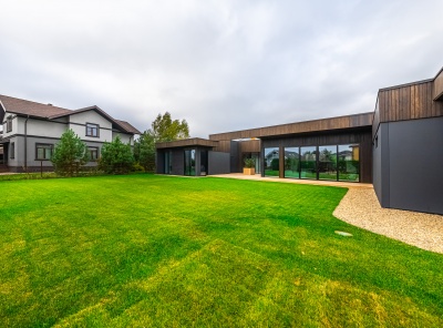 Продажа загородного дома общей площадью 400 кв. м. Новорижское шоссе, 23 км. от МКАД. Коттеджный поселок Новорижский. Одноэтажный проект построен под ключ на солнечном участке в лучшей локации поселка. Прекрасный вид на участок обеспечивают энергоэффективные панорамные окна из алюминия. Выполнен отличный, авторский дизайн с высококачественной отделкой в стиле функционального минимализма.