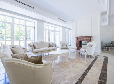 Продажа загородного дома общей площадью 1200 кв.м. Коттеджный поселок Мэдисон Парк. Новорижское шоссе, 24 км от МКАД. Двухэтажная усадьба построена по индивидуальному проекту в английском стиле. Панорамные окна наполняют просторные помещения светом. Выполнена высококачественная отделка под ключ с мебелью Angello Capellini. Много мрамора, мозайка, натуральный паркет, деревянные окна. Установлена система приточно-вытчжной вентиляции с центральным кондиционированием. Современная планировка и удобства для проживания семьи с персоналом и гостями.
