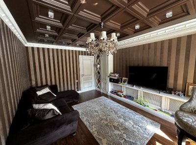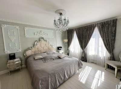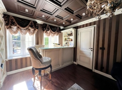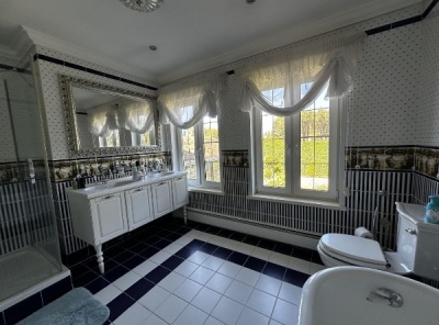 Продажа загородного дома общей площадью 743 кв.м. Новорижское шоссе, 19 км от МКАД. Коттеджный поселок Миллениум Парк. На участке имеется гостевой дом - баня из деревянного бруса 134 кв. м, бассейн. Площадь участка 20 соток.