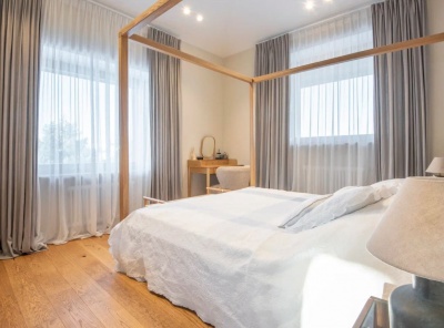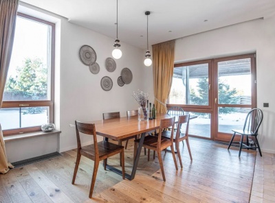 Продажа загородного дома площадью 420 кв. м. Новорижское шоссе, 33 км от МКАД. Коттеджный посёлок По-рижская мечта. Дом построен под ключ в 2 этажа. Отделка высокого уровня, приточно-вытяжная вентиляция, полы натуральное дерево, итальянская фурнитура, техника miele, сантехника villeroy&boch. Участок 15 соток, правильной формы. Выполнены ландшафтные работы, на участке современная теплица.Планировка:1 этаж: просторная гостиная с камином, кухня-столовая с выходом на террасу и зону барбекю, кабинет, гостевой с/у, гардеробная, постирочная с хоз.