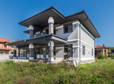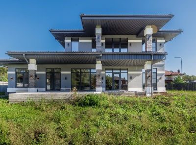 Продажа загородного особняка площадью 1040 кв.м. Новорижское шоссе, 23 км от МКАД. Коттеджный поселок Новорижский. Дом построен по индивидуальному авторскому дизайн проекту в 2 уровня. Конструктив дома: кирпич, фундамент дома свайный-монолитная плита, несущие конструкции монолитные. Отделка WhiteBox Дом оштукатурен снаружи и внутри премиальной штукатуркой в 3 слоя, сделана стяжка под теплый пол по всему дому, панорамные окна -двухкамерный энерго-эффективный стеклопакет, эксплуатируемая кровля гидроизолирована, проектом предусмотрен бассейн.