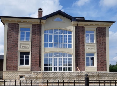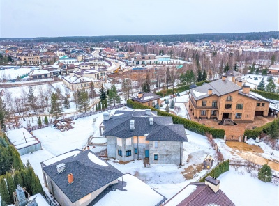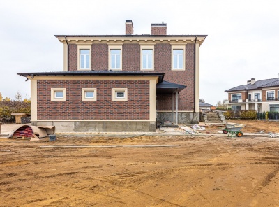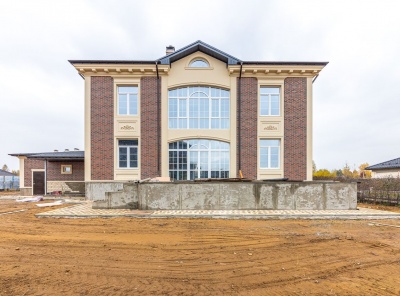 Продажа загородного дома общей площадью 780 кв.м. Новорижское шоссе, 19 км от МКАД. Коттеджный поселок Миленниум парк. Дом построен из кирпича в 3 этажа в классическом стиле. В отделке фасада использованы клинкерный кирпич, камень и мозаика. Натуральная черепица на кровле. Каминный зал с лестничным маршем, вторым светом и панорамным остеклением. На участке в 23 сотки выстелен газон, высажены крупномеры и кустарники, организован автополив, вымощены дорожки, сделано освещение.