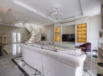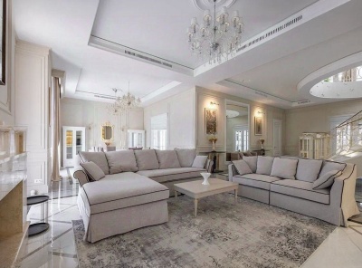 Продажа загородного дома общей площадью 1116 кв.м. Коттеджный поселок Миллениум парк. Новорижское шоссе, 19 км от МКАД. Дом построен в 2 этажа из кирпича. Светлый и просторный особняк. Выполнена дизайнерская отделка по индивидуальному дизайн проекту. Панорамные окна в пол. Высокие потолки 3.7 метров. Площадь участка 20 соток с газоном.