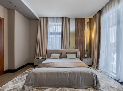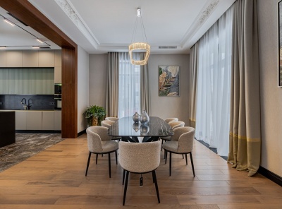 Аренда 4-комнатной квартиры площадью 240 кв.м. Метро Крылатское, 3 минуты транспортом. Улица Крылатская, дом 45к1. ЖК Долина Грез. Квартира полностью меблирована дизайнерской мебелью из массива. Панорамные окна Schuco. Выполнен ремонт в светлых тонах в современном стиле. Установлена вся необходимая бытовая техника для комфортного проживания. В каждой комнате установлены кондиционеры. Окна выходят во двор, есть балкон. 1 машиноместо в стоимости.Планировка: Кухня-столовая, гостиная, 3 спальни, кабинет, 2 гардеробные комнаты, 2 санузла.