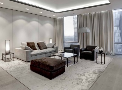 Аренда 3-комнатной квартиры площадью 150 кв. м. Метро Киевская, 8 минут транспортом. Улица Мосфильмовская, дом 8. ЖК Дом на Мосфильмовской. Квартира полностью меблирована и укомплектована всей необходимой бытовой техникой от ведущих мировых производителей: Armani Casa, B@B, Maxalto, Meridiani, Poliform, Porro. Эксклюзивный дизайнерский ремонт в современном стиле от проектного бюро SL project. Подогрев пола. Система центрального кондиционирования и климат контроля (Япония) с зональным регулированием. Виды на центр, Москва-реку, Лужники, здание МГУ, гольф-гольф клуб.
