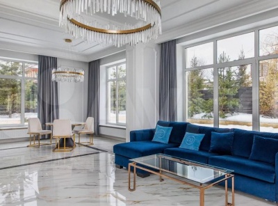 Продажа загородного дома площадью 400 кв.м. Коттедж построен в 2 этажа под ключ. Полностью готов к проживанию. Отделка в классическом стиле с использованием натуральных материалов, с мебелью. Встроенная кухня-верхняя линейка итальянских брендов с немецкой бытовой техникой. Участок 24 соток, с ландшафтным дизайном. На участке расположен отдельный гараж на 2 м/м и гостевой дом, под ключ, для персонала. Кондиционирование, подогрев полов, выделенная линия интернет.