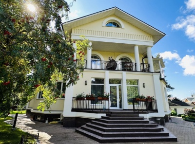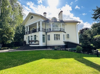 Продажа загородного дома площадью 605 кв.м. Новорижское шоссе, 14 км от МКАД. Коттеджный поселок Пенаты. Роскошный дом с дорогой отделкой, в современном классическом стиле в жилом строгоохраняемом поселке со всеми центральными коммуникациями. На лесном участке 30 соток расположены: основной дом, дом для персонала, теплый гараж на 2 авто, беседка с зоной барбекю, фонтан, вольер для собаки.
