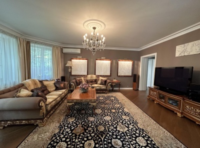 Продажа загородного дома общей площадью 850 кв.м. Поселок Архангельское. Новорижское шоссе, 9 км от МКАД. Дом построен в 4 уровня. Под ключ с мебелью. Стиль арт-деко, высочайшее качество отделки и материалов. Тщательно подобранная брендовая мебель и предметы декора. На участке 21 сотка, с великолепным ландшафтным дизайном, помимо основного дома расположены: гостевой дом с зоной для барбекю, детская игровая площадка, гараж на 2 м/м с техническими помещениями и квартирой для персонала.