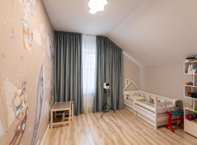 Продажа половины загородного дуплекса площадью 350 кв.м. Новорижское шоссе, 16 км от МКАД. Охраняемый поселок Веледниково. Дом построен в 3 этажа в окружении многовековых деревьев. В доме выполнена высококачественная отделка под ключ, основной концепт которой это удобство и экологичность. Современный дизайнерский ремонт, панорамные окна. Участок 25 соток.Планировка:1 этаж - гостиная-кухня-столовая, с/у, спальня, холл,2 этаж - кабинет, с/у, 2 спальни, спальня с гардеробной и с/у, Цоколь - душевая, кладовая, котельная, постирочная, сауна.