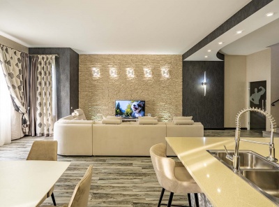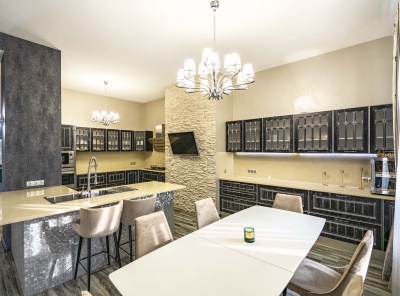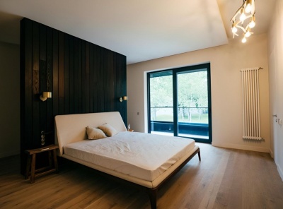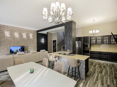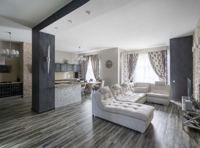 Продажа загородного дома общей площадью 485 кв.м. Коттеджный поселок Мозжинка. Новорижское шоссе, 38 км от МКАД. Дом построен в 2 этажа. Сдается с чистовой отделкой, полностью укомлектованный премиальной мебелью и бытовой техникой. Коммуникации: теплые водяные полы, выполнена разводка электричества, проведен газ и организована газовая котельная с оборудованием Baxi. Предусмотрена система резервного отопления. Проведены трассы под кондиционеры. Предусмотрено место для хаммама.