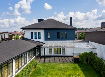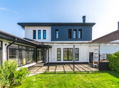 Продажа загородного дома площадью 432 кв.м. на участке площадью 10 соток. Коттеджный поселок Русская деревня. Новорижское шоссе, 24 км от МКАД. Стильный дом с отделкой «под ключ», оборудованный дизайнерской мебелью премиум класса, эксклюзивной сантехникой и современной бытовой техникой выполнен в 2 этажа. Участок 10 соток. Коттедж располагается в тихой части поселка.Уникальный проект выполнен в современном стиле. Тщательно продуманы все детали для комфортного проживания. В строительстве и отделке использованы натуральные материалы.