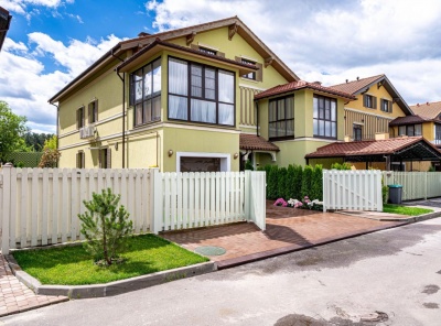Продажа загородного таунхауса общей площадью 290 кв. м. Новорижское шоссе, 20 км. от МКАД. Коттеджный поселок Маленькая Италия. Дом построен в 3 этажа под ключ. Выполнен дизайнерский ремонт с использованием дорогостоящих материалов. Высококачественная мебель и техника от ведущих мировых производителей. Просторный участок 4 сотки с ландшафтным дизайном: высажены декоративные растения и цветы, смонтированы автополив и освещение.