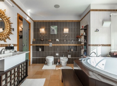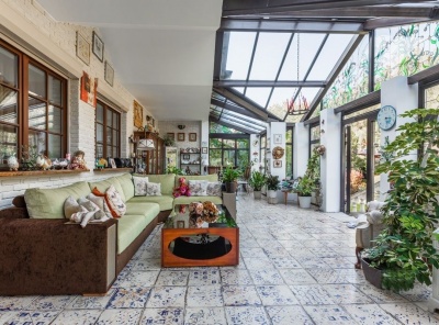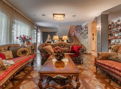Продажа загородной усадьбы общей площадью 2000 кв.м. Новорижское шоссе, 26 км от МКАД. Коттеджный поселок Риверсайд. Особняк построен из железобетонного каркаса - кирпич утеплен и облицован натуральным камнем в 3 этажа. Классический дизайн интерьера дополнен элементами массива дерева драгоценных парод. Все окна экологичные и сделаны из дерева. Планировка удобная и понятная разделяет дом на 2 крыла, по центру дома зал со вторым светом.