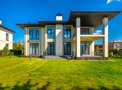 Продажа загородного дома площадью 450 кв.м. Коттеджный поселок Гринфилд. Новорижское шоссе, 23 км от МКАД. Коттедж построен в 2 этажа. Полностью готов к проживанию. Отделка в современном стиле. Встроенная кухня с бытовой техникой. Панорамное остекление. Просторный участок 23 сотки с ландшафтным дизайном. На участке расположен отдельно стоящий домик с квартирой для персонала, сауной и беседкой для барбекю. Так же есть гараж на 2 авто.