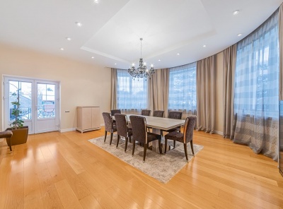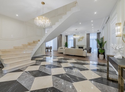 Продажа загородного дома общей площадью 600 кв.м. Коттеджный поселок Гринфилд. Новорижское шоссе, 24 км от МКАД. Коттедж построен в 3 этажа под ключ, полностью меблирован и готов к проживанию. Участок 21 сотка благоустроен и ухожен, высажены взрослые деревья. Планировка:1 этаж - кухня-столовая-гостиная с камином и вторым светом, кабинет, с/у.2 этаж - 3 спальни со своей гардеробной и с /у.Мансарда - помещение для персонала: 2 спальни с гардеробной и с/у, постирочная.