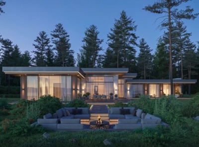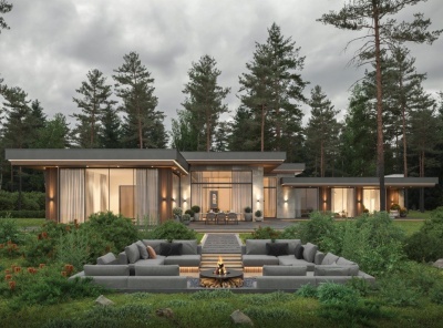 Продажа загородного дома площадью 475 кв.м. коттеджный поселок Павловы Озера. Новорижское шоссе, 18 км от МКАД. Большой одноэтажный дом в современном стиле на береговой линии озера. Фасад дома выдержан в натуральной гамме и гармонично вписывается в окружающее пространство. Панорамные окна в пол. Высокие потолки. Натуральные материалы. На фасаде применяются декоративные элементы из керамогранита, дерева и металла. Продуманная планировка. Интеграция передовых технологий и систем автоматизации. Участок 12.4 сотки.