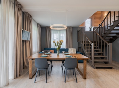 Продажа загородного дома общей площадью 440 кв.м. Новорижское шоссе, 24 км от МКАД. Коттеджный поселок Монтевиль. Дом построен в 2 этажа. Под ключ. Выполнена дизайнерская отделка под ключ, с мебелью. Дом новый. Лучшее расположение в поселке. Со своим видом и выходом в парк с прудом. Оборудован приточно-вытяжной системой вентиляции с центральным кондиционированием. На участке 18 соток выполнен ландшафтный дизайн с освещением.Планировка1 этаж - холл, кухня, столовая, гостиная, спальня с с/у, 2 этаж - 3 спальни с с/у и гардеробными.