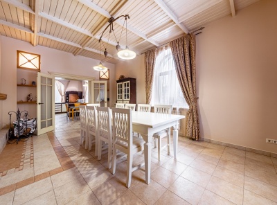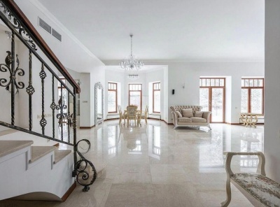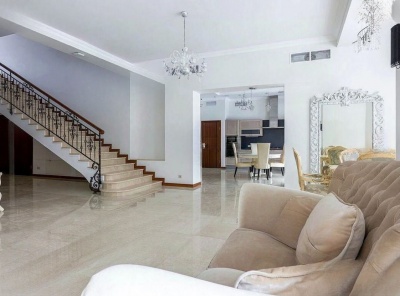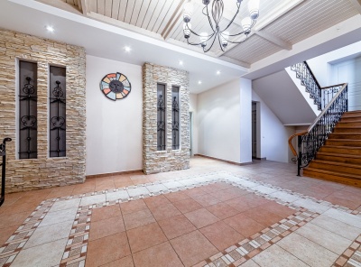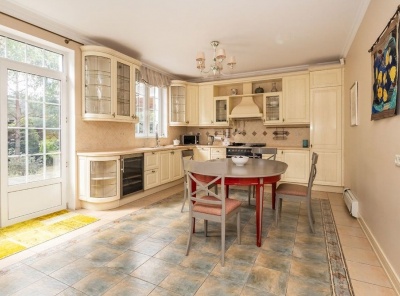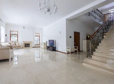 Продажа загородного дома площадью 340 кв.м., Новорижское шоссе, 16 км от МКАД. Коттеджный поселок Усадьба Веледниково. Дом построен в 2 этажа из кирпича. Отделка выполнена в классическом стиле с использованием качественных материалов. Участок 23 сотки с великолепным ландшафтным дизайном. На участке расположены дом для персонала с гаражом на 1 м/м, беседка, терраса с зоной-барбекю, вольер для собак.Планировка:1 этаж - холл, гардеробная, кухня с выходом на террасу, гостиная, столовая, с/у, зона отдыха, кабинет, спальня с с/у, тех.