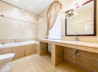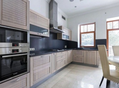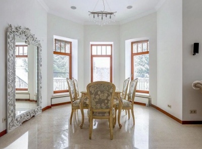Уникальное предложение! Аренда загородного дома площадью 500 кв.м. Новорижское шоссе, 19 км от МКАД. Коттеджный поселок Балтия. Дом построен по индивидуальному проекту в 3 уровня. Высокое качество строительства. В доме выполнен ремонт в классическом стиле. Дом расположен на лесном участке с вековыми соснами площадью 40 соток. На участке находится отдельностоящий банный комплекс с бассейном и квартирой для персонала.Планировка:1 этаж - прихожая с гардеробной, кухня, столовая, гостиная с камином, кабинет, с/у, котельная, гараж на 2 авто.