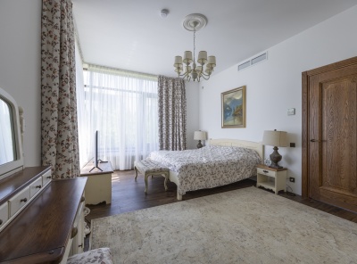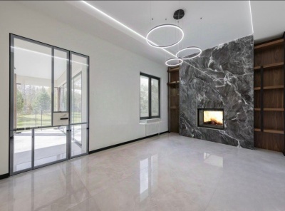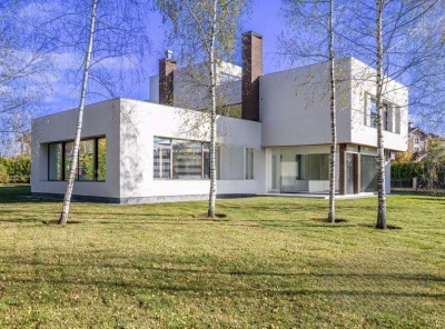 Продажа загородного дома общей площадью 600 кв.м. Коттеджный поселок Монтевиль. Новорижское шоссе, 24 км от МКАД. Фасад дома с большими окнами выполнен в современном стиле и облицован белой штукатуркой. В отделке лаконичного интерьера использованы молочные оттенки и фактура дерева и камня. Планировкой коттеджа предусмотрены 4 спальни, гостиная с камином и парадной столовой, кухня-столовая с камином и гараж на 2 машины. В свободной комнате можно обустроить домашний кинотеатр, а на эксплуатируемой кровле зону отдыха на свежем воздухе.