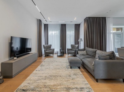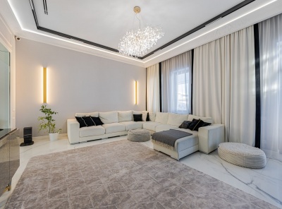Продажа загородного дома общей площадью 700 кв.м. Новорижское шоссе, 19 км от МКАД. Коттеджный поселок Миллениум парк. Дом построен в 2 этажа в классическом стиле. Выполнена дизайнерская отделка с эксклюзивными элементами в светлых тонах. Все материалы премиального качества. Пол инженерная доска Миссури из американского ореха, широкоформатный керамогранит из Испании. Лестница и стеновые панели сделаны из натурального дуба. Комоды и бары в гостиной премиальная фабрика ALEAL.