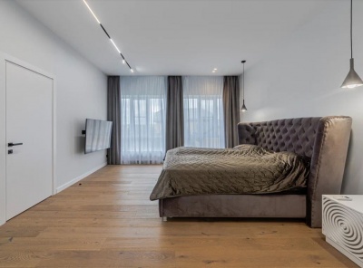 Продажа загородного дома площадью 300 кв.м. Новорижское шоссе, 23 км от МКАД. Коттеджный поселок Новорижский. Дом построен в стиле Райт из материалов премиум-класса, с фасадом из массива лиственницы и клинкерной плитки, что создает роскошный и изысканный внешний вид. Интерьер выполнен в современном стиле с использованием передовых инженерных технологий, обеспечивающих комфорт и функциональность. Вокруг дома установлена система видеонаблюдения для обеспечения безопасности.