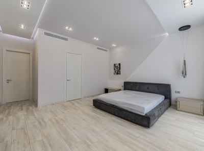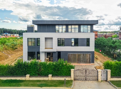 Аренда загородного дома общей площадью 535 кв.м. Новорижское шоссе, 18 км от МКАД. Коттеджный поселок Ренессанс Парк. Дом построен в 2 этажа. Отделка White Box: электрика, канализация, водоснабжение, отопление, отштукатурены стены. Панорамное остекление, высокие потолки. Грамотная планировка, много света и простора. Выход на эксплуатируемую кровлю, где открывается красивый вид на поселок. Участок 19 соток правильной формы в центре поселка. Тихое место недалеко от центрального парка с выходом в лес.