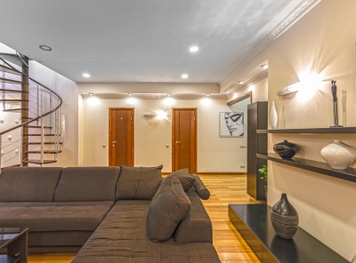 Продажа 6-комнатной квартиры площадью 260 кв.м. Метро Сокол, 5 минут пешком. Хорошевское ш., 16к1. ЖК Дом на Береговой. Двухуровневый, просторный, светлый, пентхауз с отделкой в современном стиле, выполненной из высококачественных экологичных материалов. Пол - массив дерева. Кухня - бытовая техника Kuppersbusch. Вся техника в постирочной - Miele. Подогрев полов, кондиционирование. В квартире имеется сауна и действующий дровяной камин! Панорамные окна на 3 стороны света делают квартиру максимально светлой.
