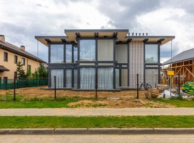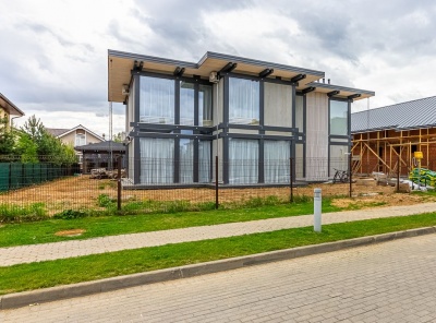 Продажа загородного дома площадью 340 кв.м. Новорижское шоссе, 23 км от МКАД. Коттеджный поселок Новорижский. Дом построен в 2 этажа по Немецкой технологии в стиле современный Фахверк. Без отделки. Панорамные, ударопрочные со специальным напылением стеклопакеты вместо массивных стен наполняют дом светом и единением с природой. Участок 12 соток. Расположен всего в пяти минутах прогулки до большого парка с озером.Планировка:1 этаж - кухня-гостиная-столовая, 2 спальни, 2 гардеробные, с/у, котельная,2 этаж - мастер-спальня, гардеробная, 3 спальни, с/у.
