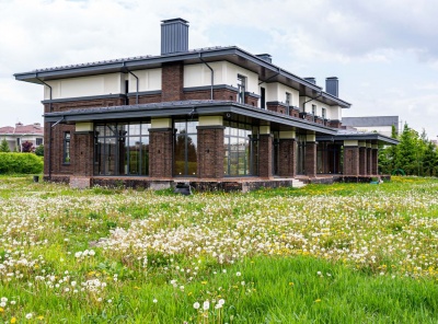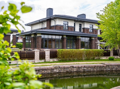 Продажа загородного дома общей площадью 1126 кв.м. Новорижское шоссе, 19 км от МКАД. Коттеджный поселок Миллениум Парк. Коттедж построен в 2 этажа. Под отделку. Расположен на берегу канала. Облицован натуральным клинкерным кирпичом, газовые котлы установлены, дом отапливается. Крыша на обоих домах - клик фальц со снегозадержанием, стальной водосточной системой и молниеотводами. Остекление террас и зимнего сада выполнено из алюминия, окна в обоих домах-теплый 8 профиль Rehau. На участке 42 сотки расположен основной дом 1126кв.м.