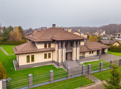 Продажа загородного дома общей площадью 7000 кв.м. Рублёво-Успенское шоссе, 8 км от МКАД. Коттеджный поселок ParkVille Жуковка (Парк Вилль). Участок 104 сотки. Роскошный особняк с гостевым домом и домом для персонала в охраняемом коттеджном поселке. Все строения в едином архитектурном стиле.Отделка фасада из итальянского камня. Крыша медная. Коммуникационные системы готовы. Дом без внутренней отделки , свободная планировка. Все коммуникации центральные. Резервная скважина на воду, электричество 300 кВт.