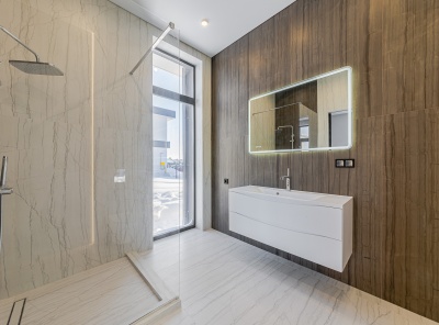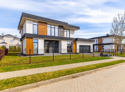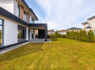Продажа нового загородного дома площадью 470 кв.м. Новорижское шоссе, 23 км от МКАД. Коттеджный поселок Новорижский. Дом построен в 2 этажа из кирпича в стиле Хайтек. Интерьер в стиле минимализм, который делает акцент на просторные помещения с обилием воздуха и света. Панорамное остекление. На участке 13 соток уложен газон. Парковка на 2 м/м. Все коммуникации центральные.